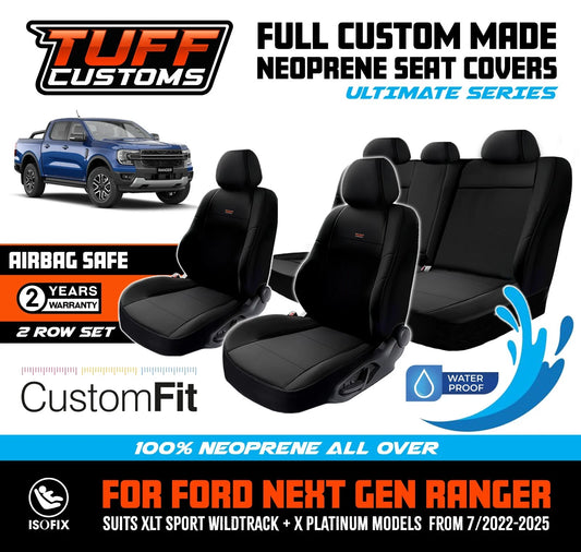 Tuff Customs Neoprene Seat Covers 2 Rows For FORD RANGER NEXT GEN Wildtrack SPORT 2022-2025