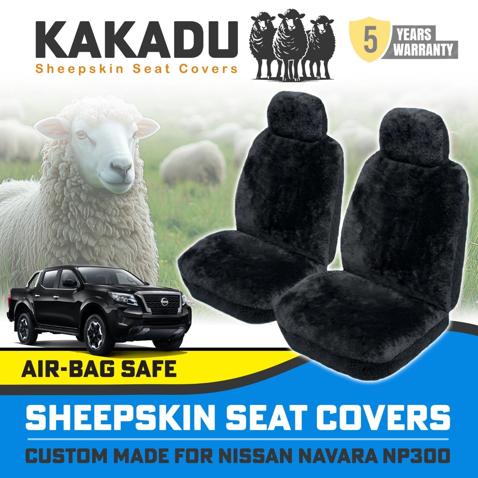Custom KAKADU Sheepskin Seat Covers Nissan Navara D23 NP300 ST STX PRO4X 2015-2025 Black