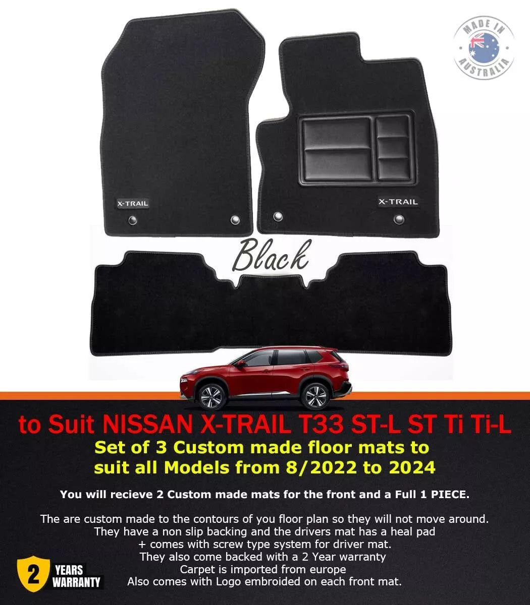 Custom Made Floor Mats 2 Rows For Nissan X-Trail ST T33 Ti Ti-L ST-L 8/2022-2025 Black