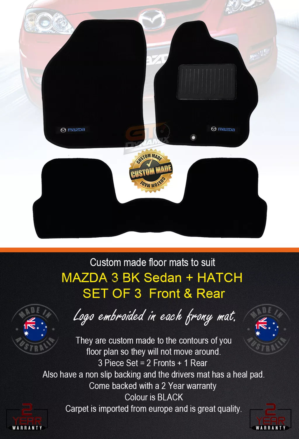 MAZDA 3 BK CUSTOM MADE FLOOR MATS F + R 01/2004-2008 SP23 Hatch + Sedan in BLACK