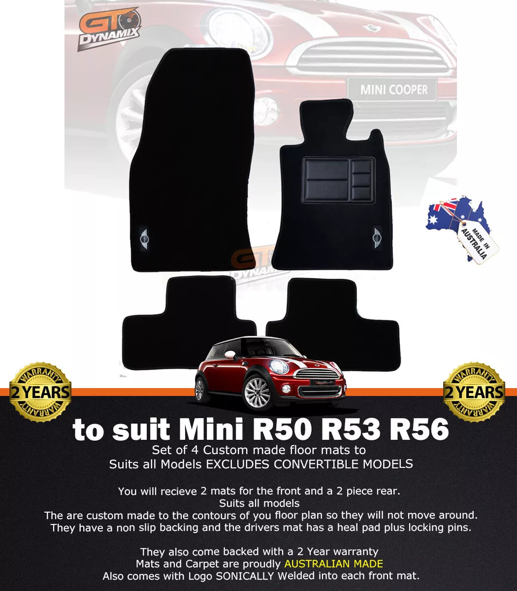 Mini Cooper R50 R53 R56 Custom Made Front+ Rear Floor Mats BLACK Jan/2002-ON