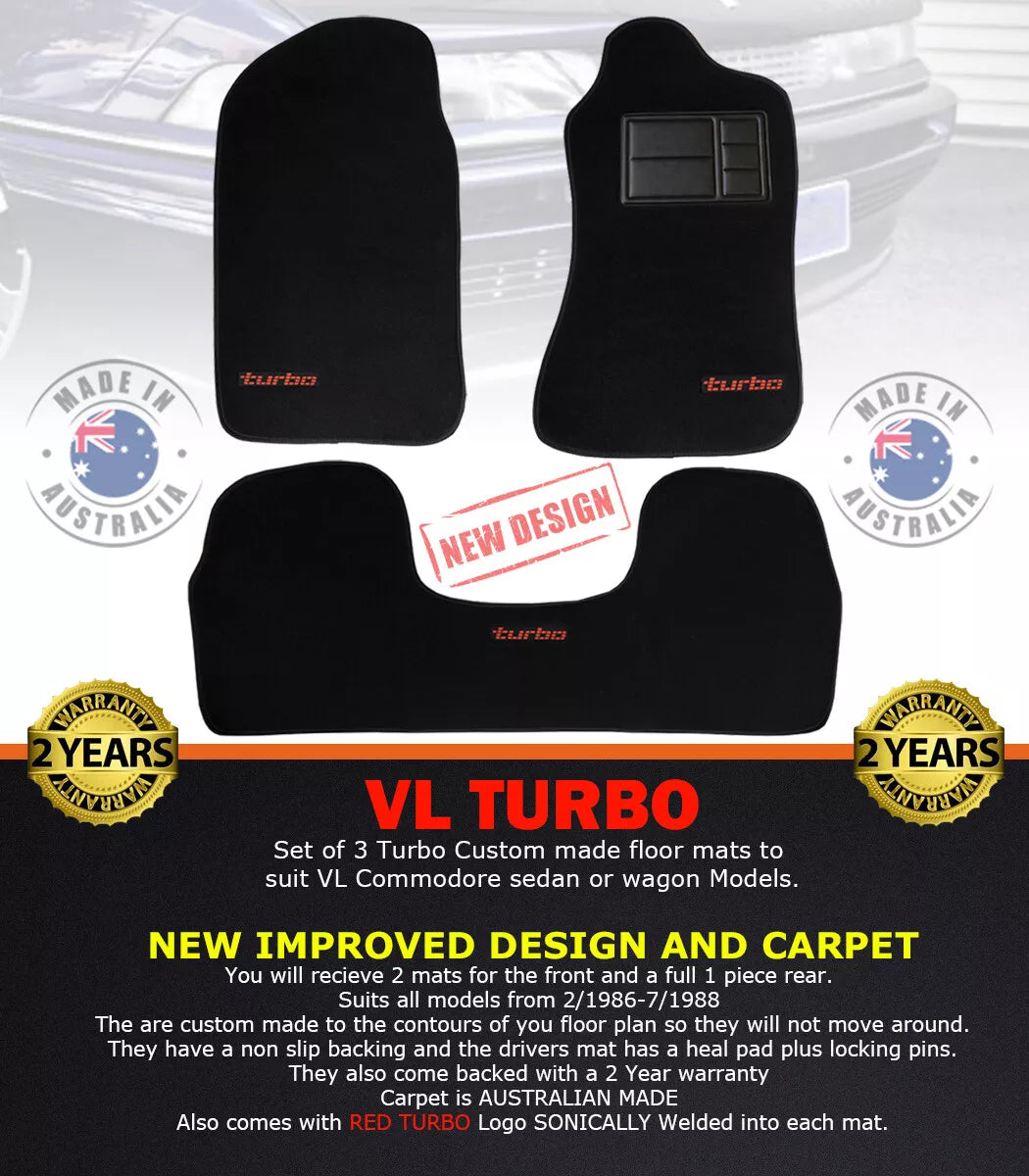 Custom Made Floor Mats Set of 3 BLACK with Red Badge VL TURBO Calais BT1 Berlina SL