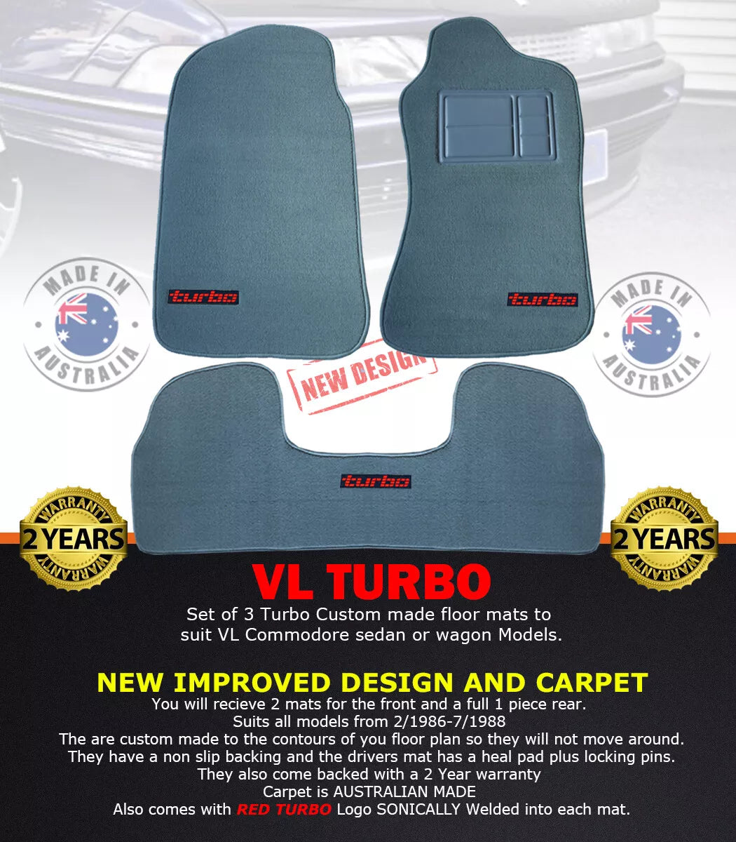 Custom Made Floor Mats Set of 3 Turquoise with RED Badge VL TURBO Calais BT1 Berlina SL