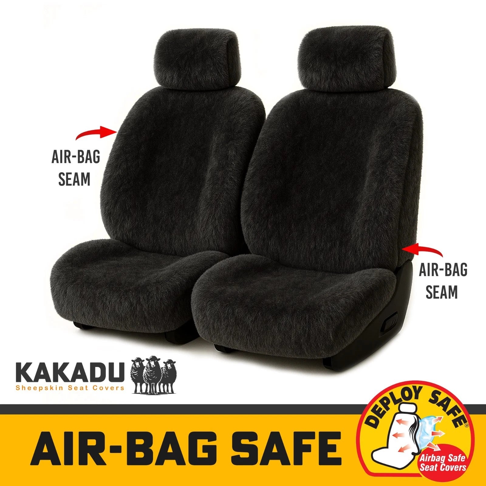 KAKADU Ultimate Luxe Universal Sheepskin Car Seat Covers in BLACK (with Sheepskin SKIRTING)