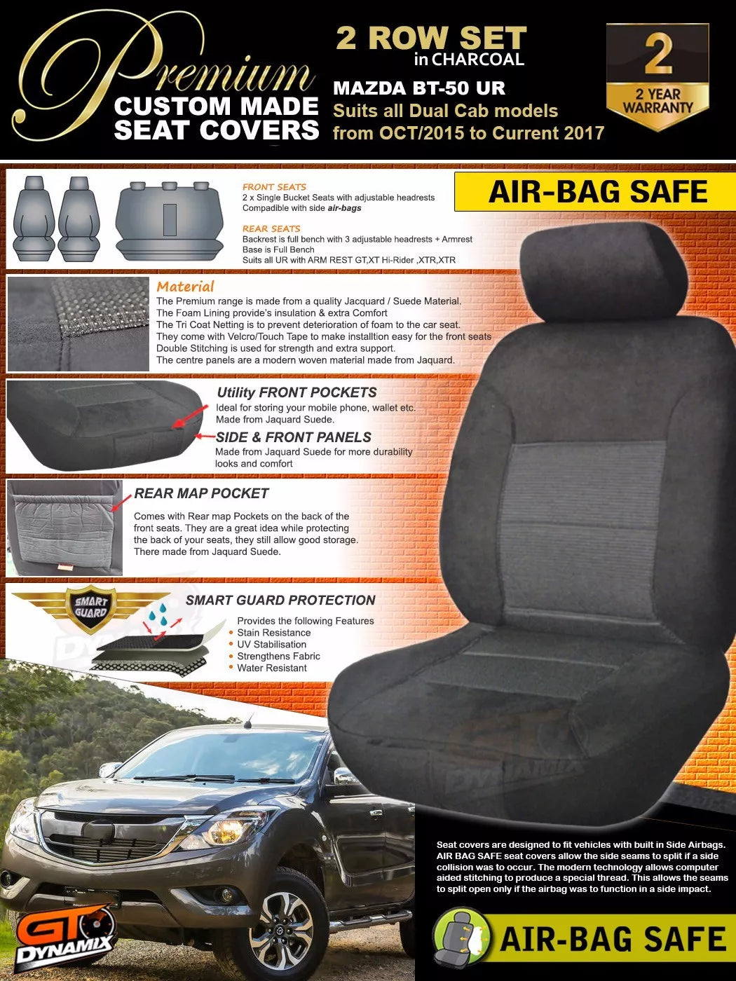 Premium Seat Covers 2 Rows Charcoal Grey For MAZDA BT-50 UR XT GT Dual Cab 10/2015-20 BT50