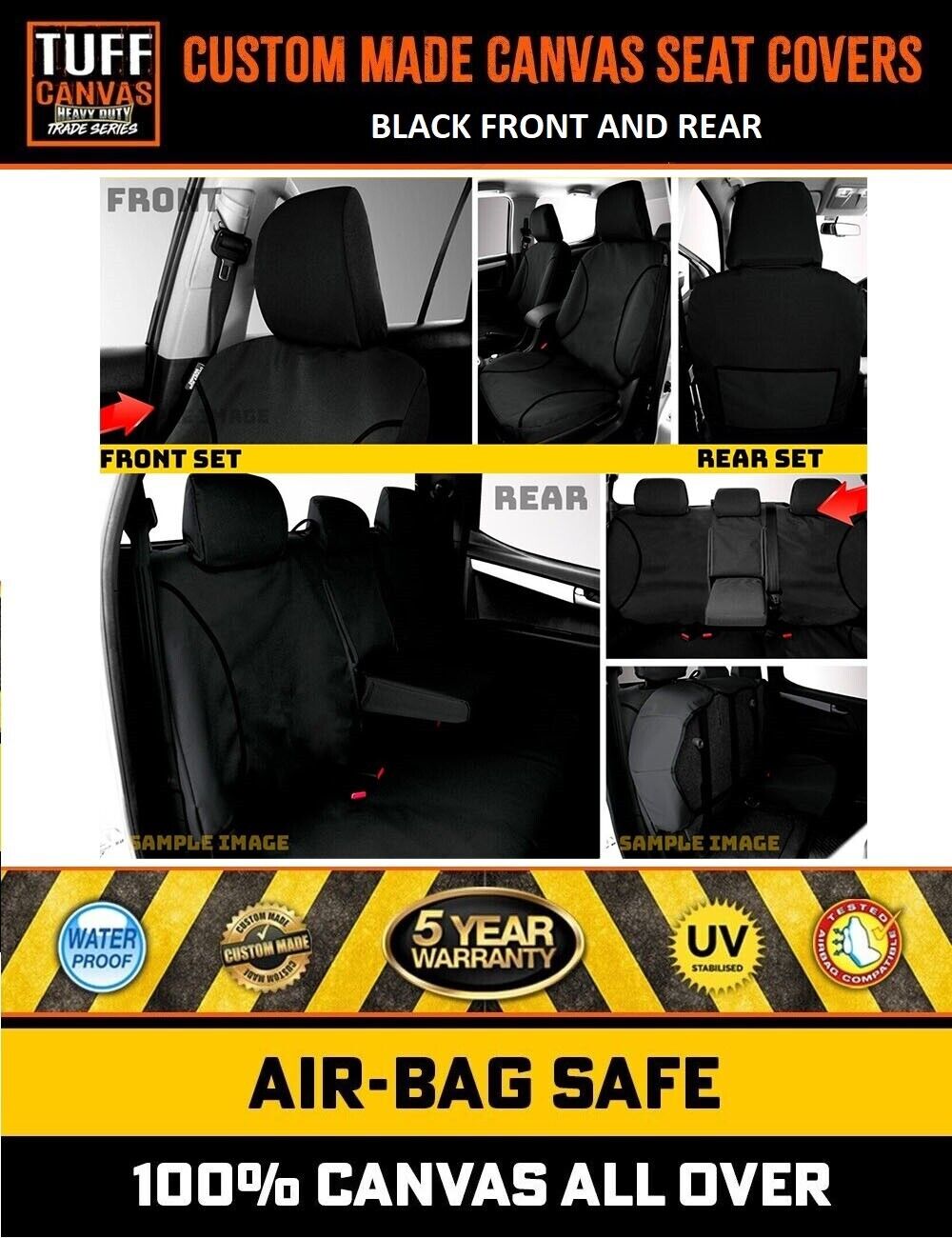 BLACK TUFF HD TRADE FRONT & REAR Canvas Seat Cover for Toyota Hilux SR SR5 Dual Cab 4 X 2 ONLY 8/2009-9/2015