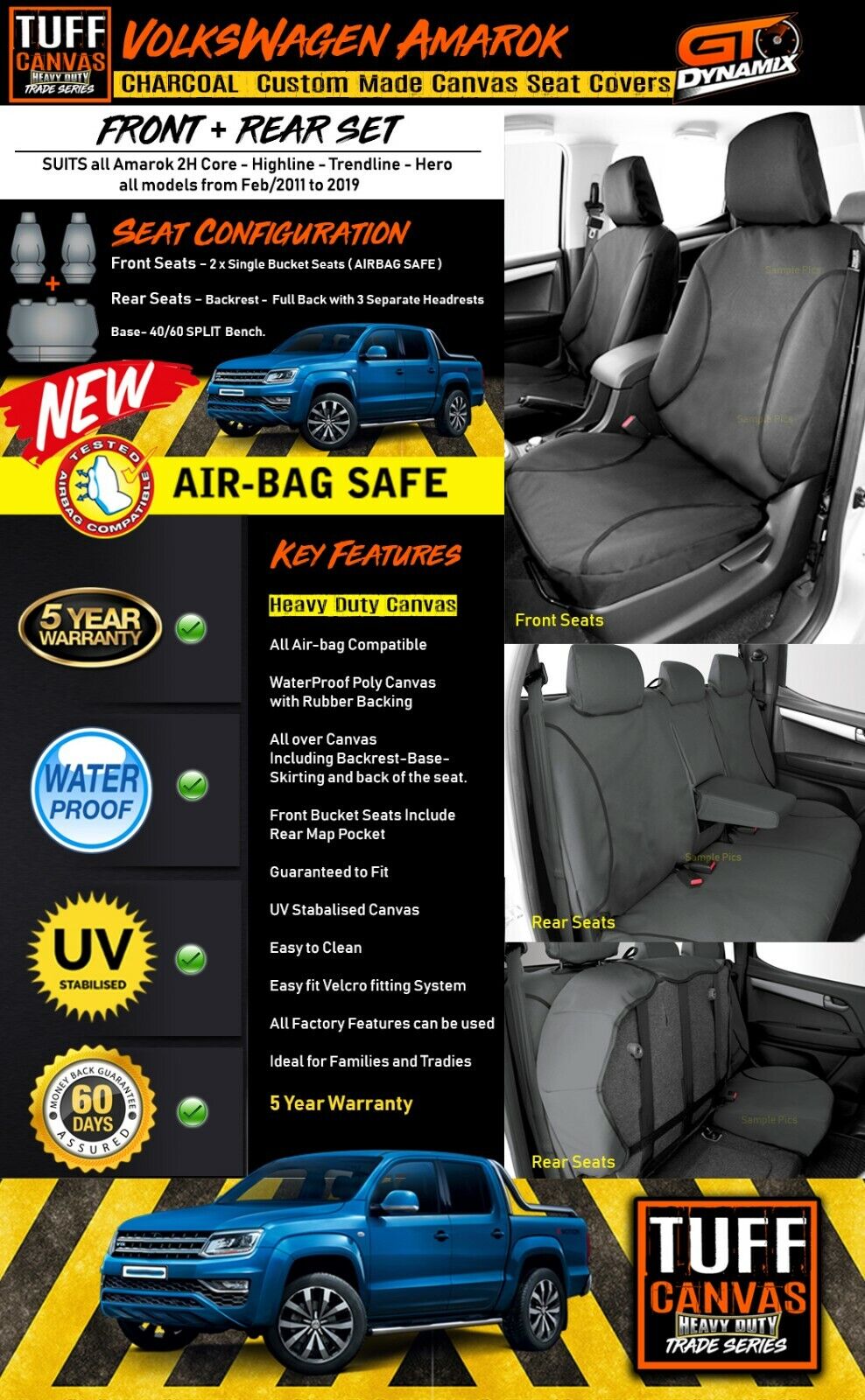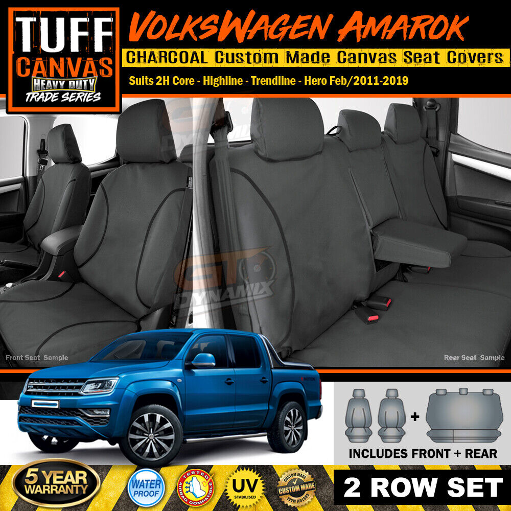 TUFF HD TRADE Canvas Seat Covers 2 Rows For Volkswagen Amarok 2H 2/2011-19 Charcoal