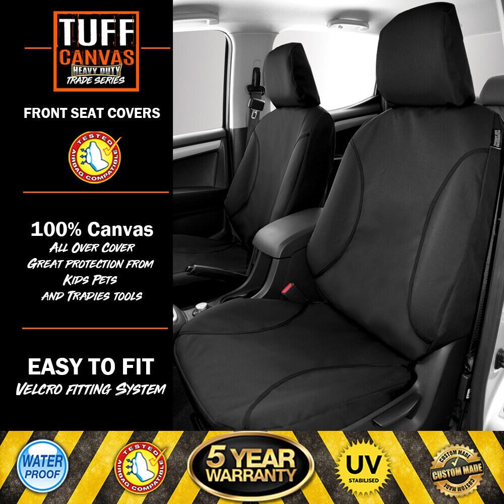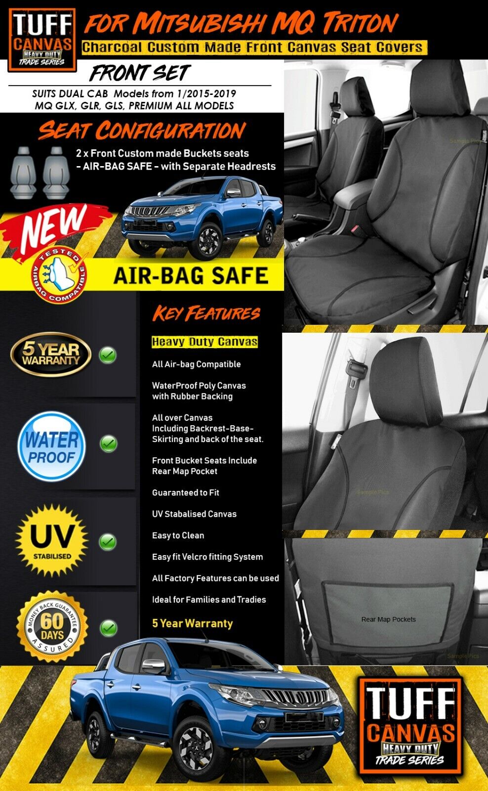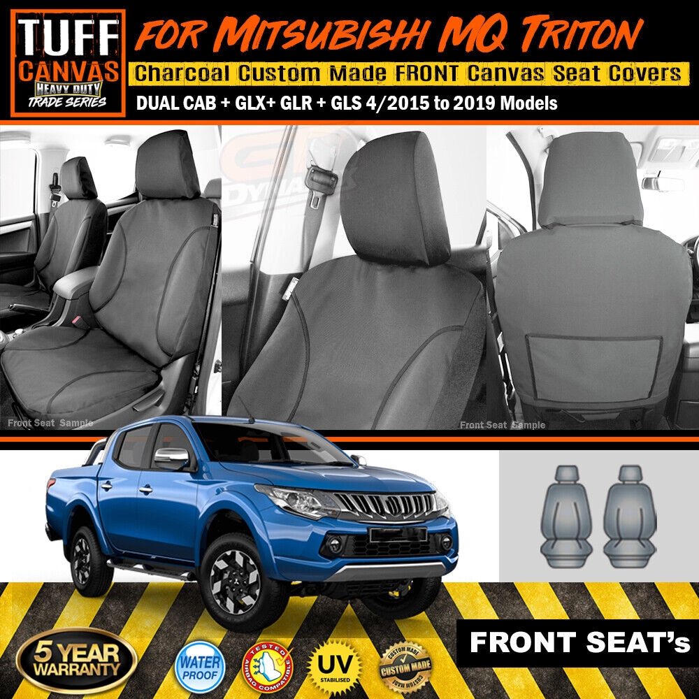 TUFF HD TRADE Canvas Seat Covers Front For Mitsubishi Triton MQ GLX GLR GLS 2015-2019 Charcoal
