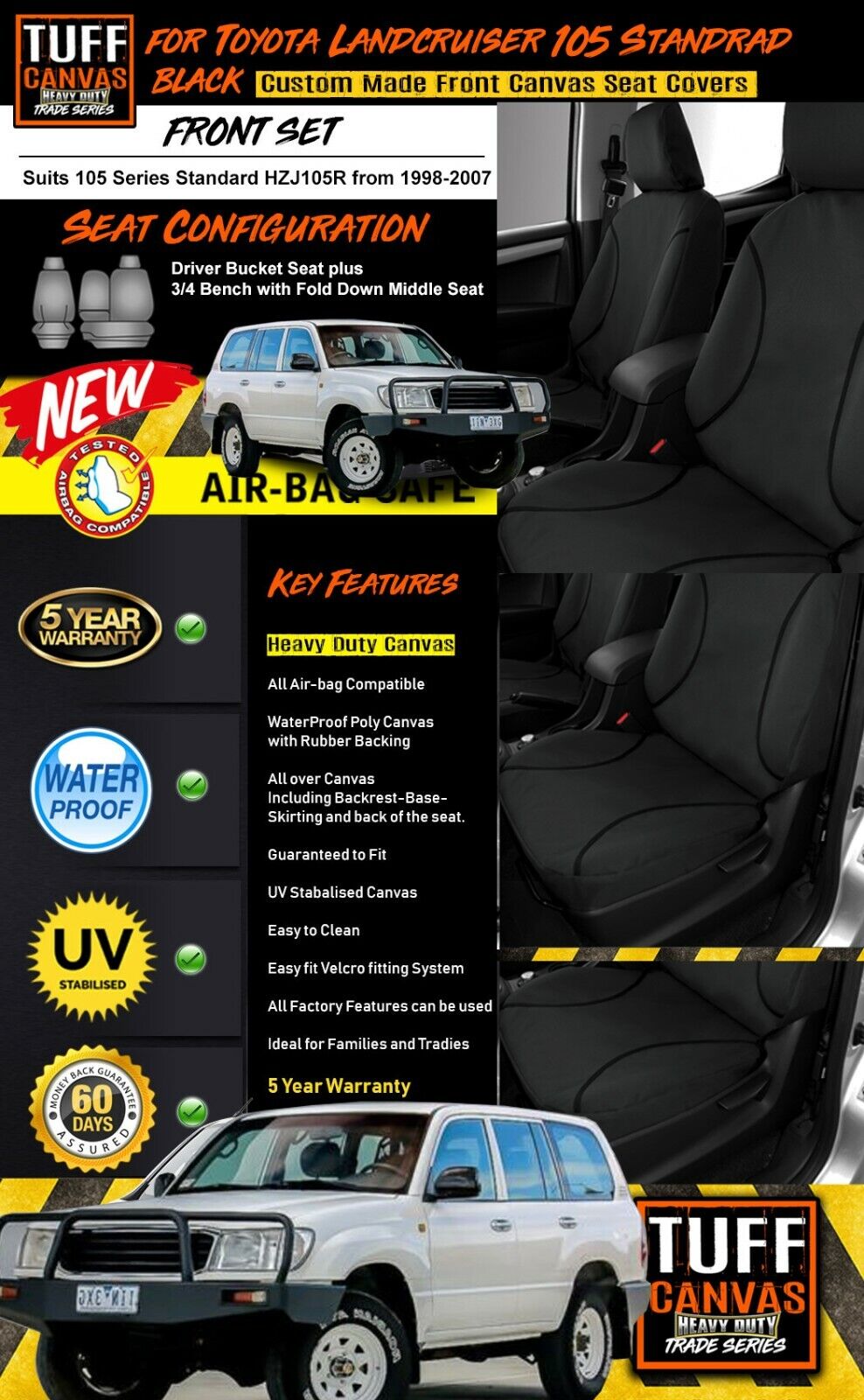 TUFF HD TRADE Canvas Seat Covers Front For Toyota Landcruiser HZJ105R 1998-2007 Black