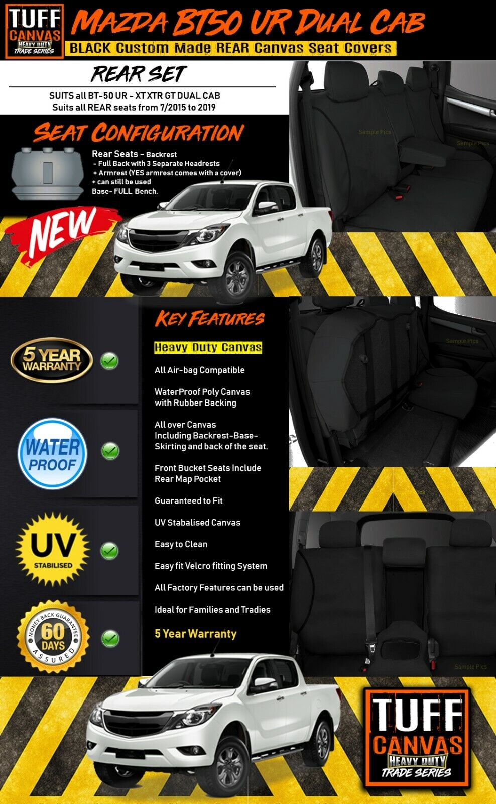 TUFF HD TRADE Canvas Seat Covers Rear For Mazda BT-50 UR XT XTR BT50 7/2015-2019 Black