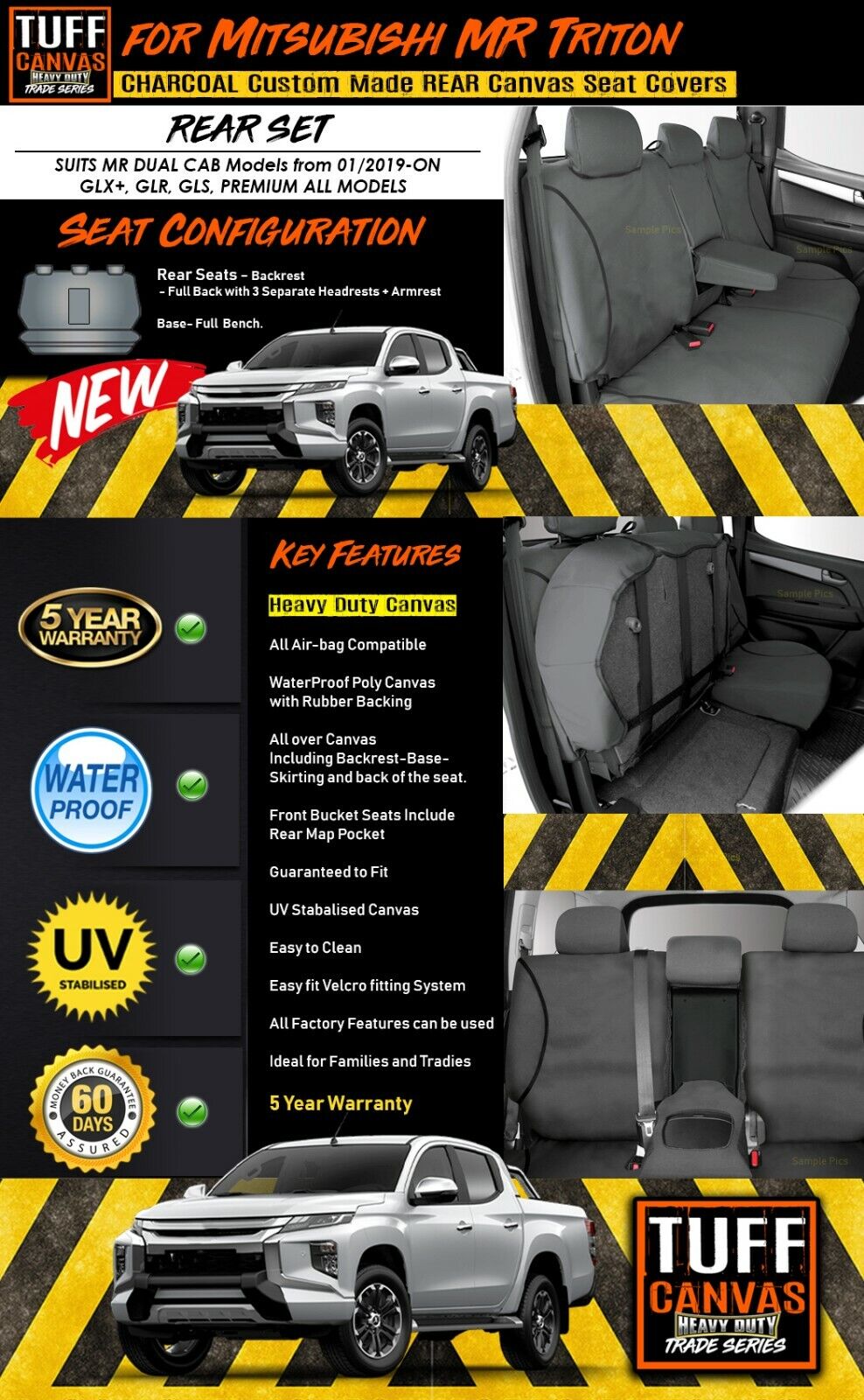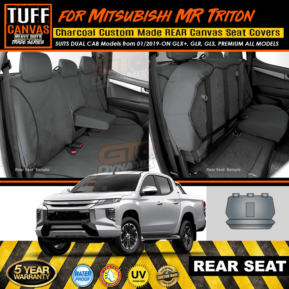 TUFF HD TRADE Canvas Seat Covers Rear For Mitsubishi Triton MR Dual Cab GLX GLR 1/2019-2023 Charcoal