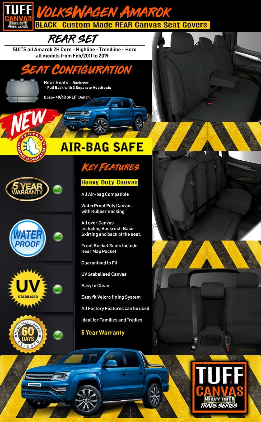TUFF HD TRADE Canvas Seat Covers Rear For Volkswagen Amarok 2H Core 2/2011-2022 Black